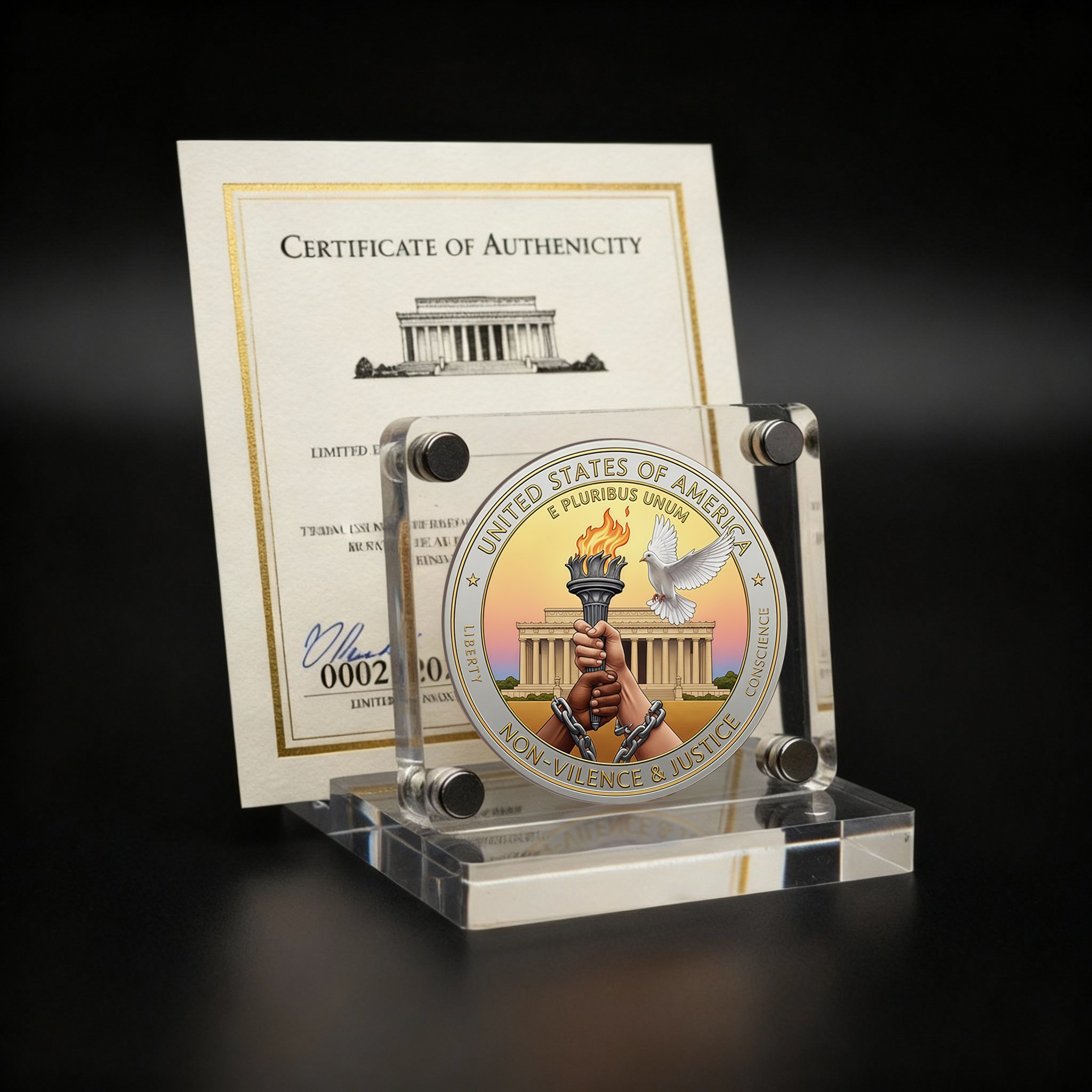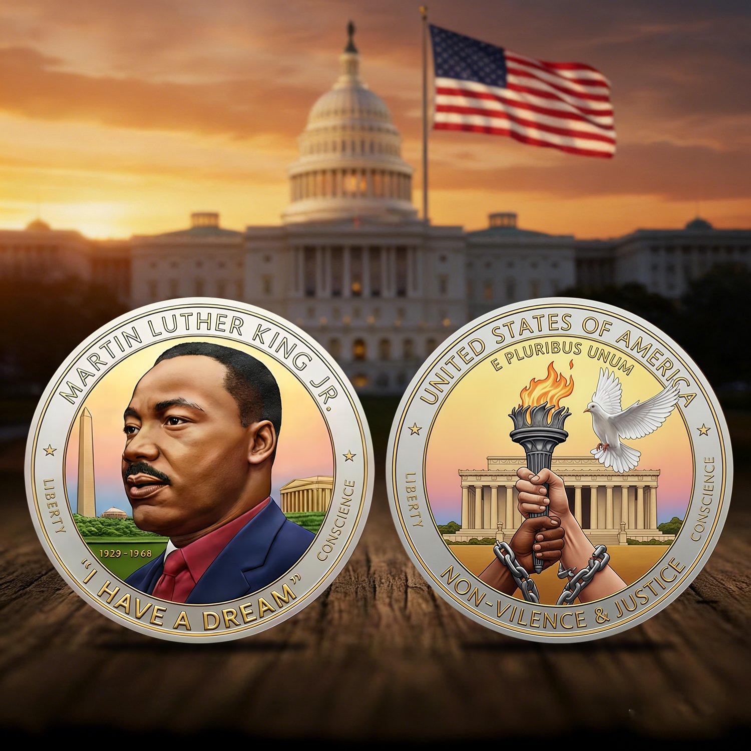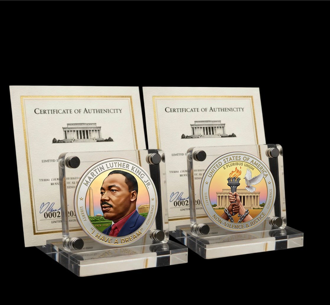 Holding this coin is a reminder that the dream lives within each of us—every act of kindness, fairness, and compassion keeps the vision alive. It invites us to reflect on how far we have come, and how far we must continue to go.